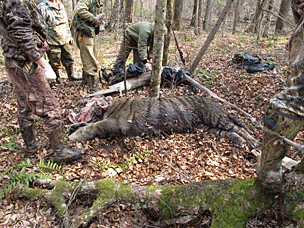 Отпугивающий выстрел из ружья в воздух был произведен с опозданием – уже после того как тигр начал убегать в лес. После 10-минутного ожидания иммобилизационная группа из 7 человек отправилась по следам тигра.