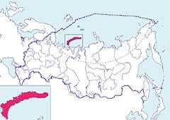 Распространение: Описан с территории арх. Новая Земля: Северный и Южный о-ва и о. Междушарский. Распределение оленя на архипелаге во многом зависит от сезона года и погодных условий. Основное поголовье оленя сосредоточено на Южном о-ве, где олень проводит в течение года большую часть своей жизни. Здесь происходит его отел и основные зимовки. На Северном о-ве часто встречается в летний период, ближе к осени откочевывает на Южный о-в. Остается небольшая часть животных по различным водоразделам Северного о-ва. Вероятнее всего это так называемые аборигенные северные олени [1-4].